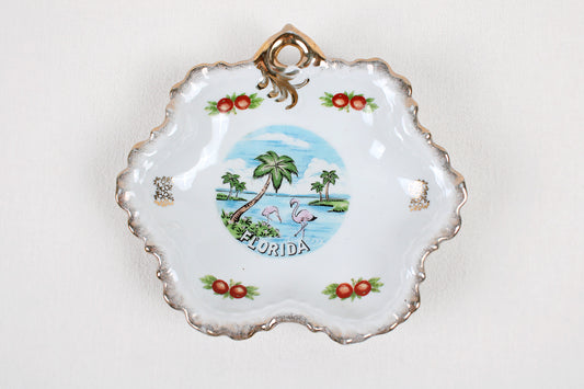 Florida Candy Dish / Trinket Holder / Wall Decor With Goldtoned Ruffled Edge